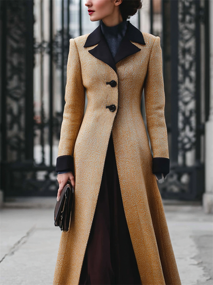 Vintage Classy Contrast Hem Long Wool Coat