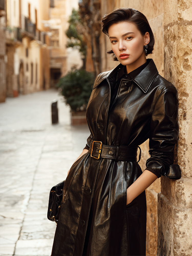 Retro-style Fashion Black Leather Coat