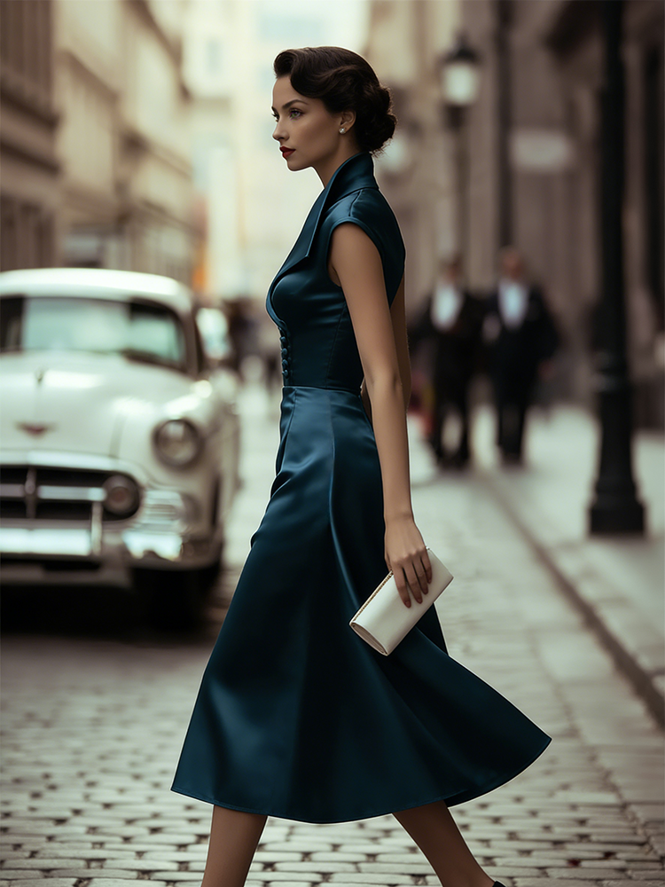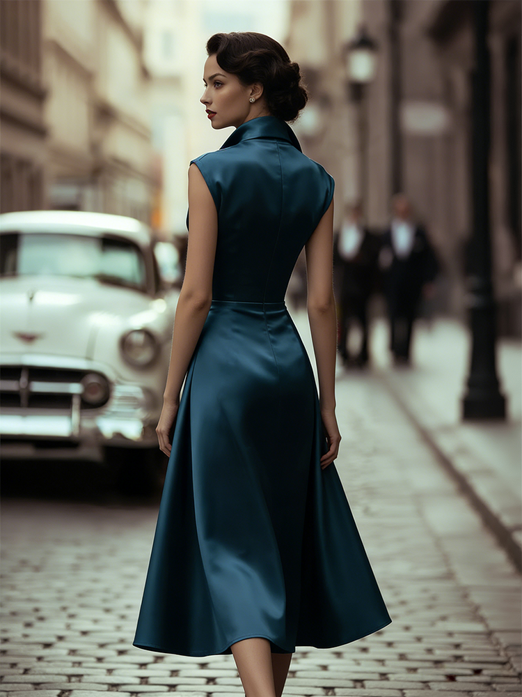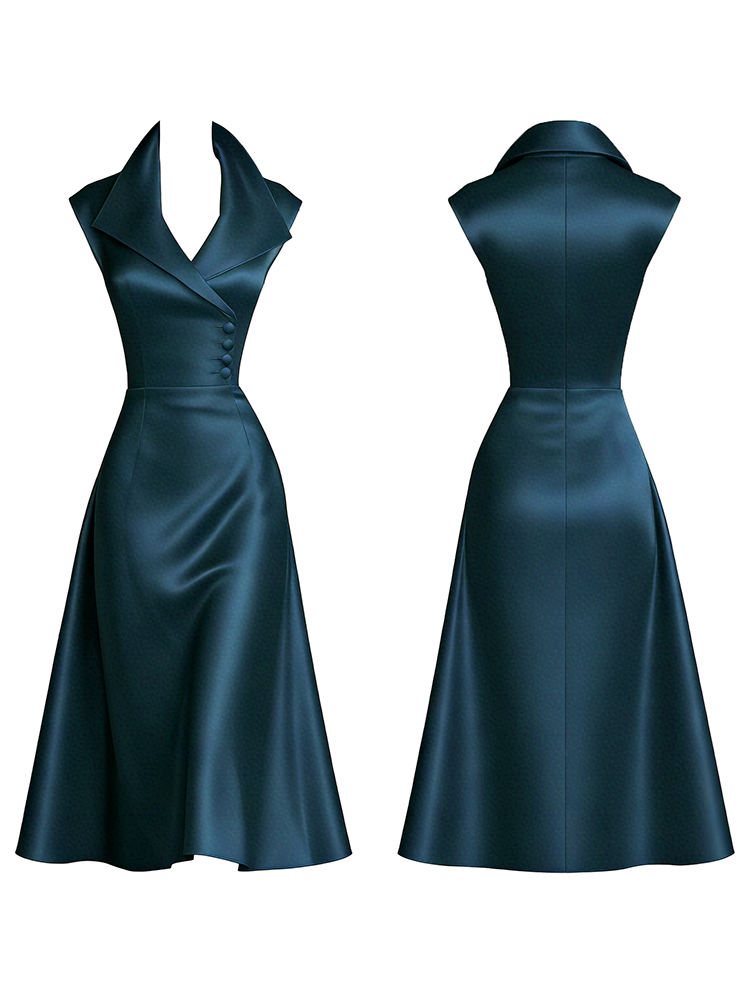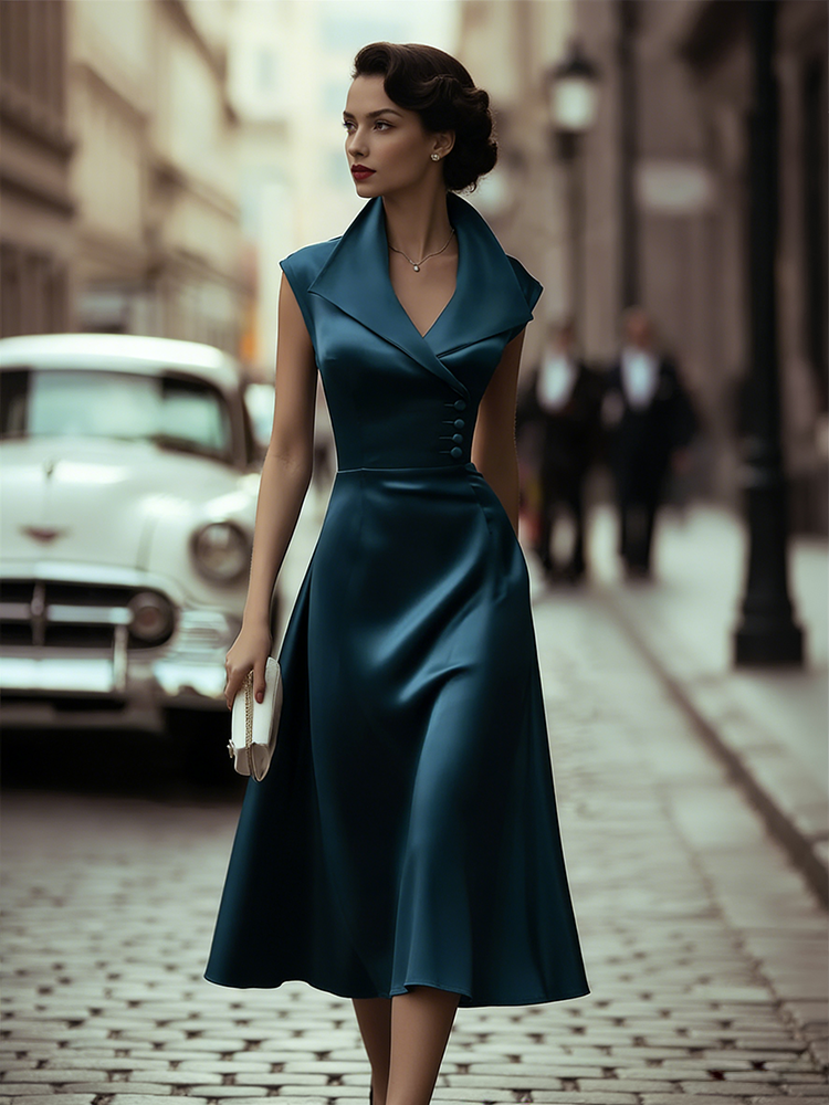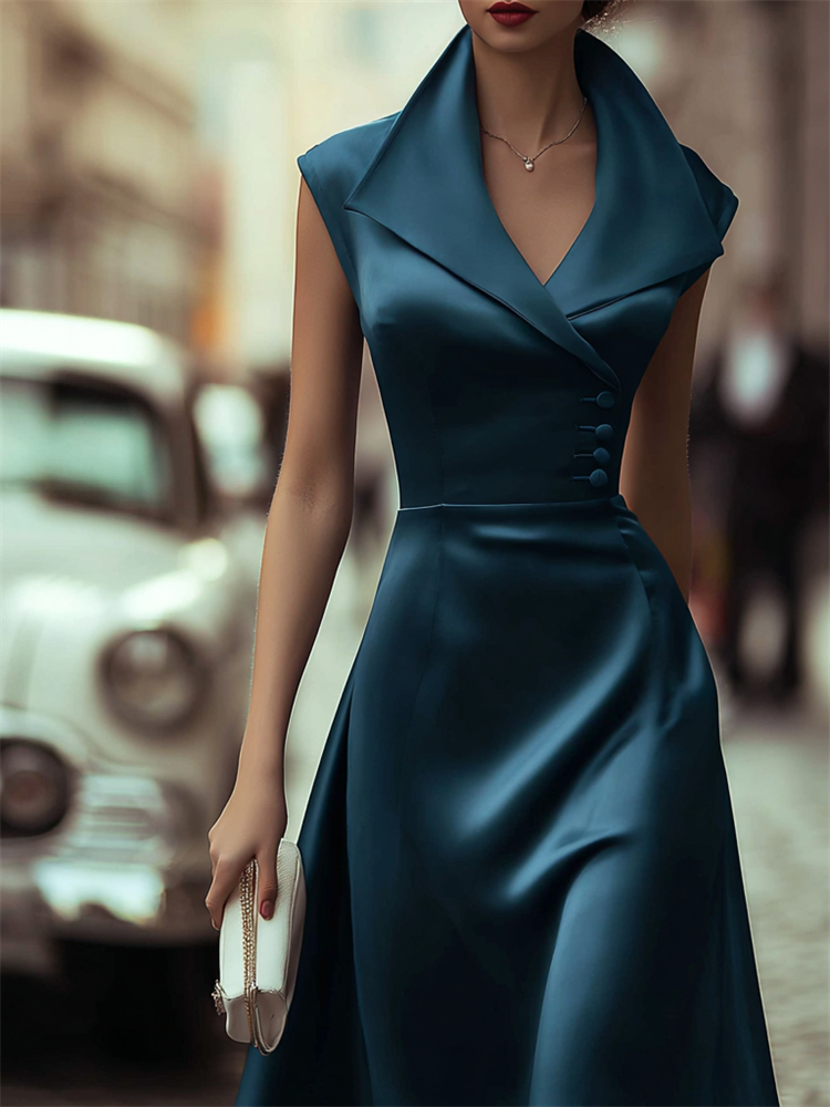 Classy Side Buttons Lapels Flowy Satin Maxi Dress