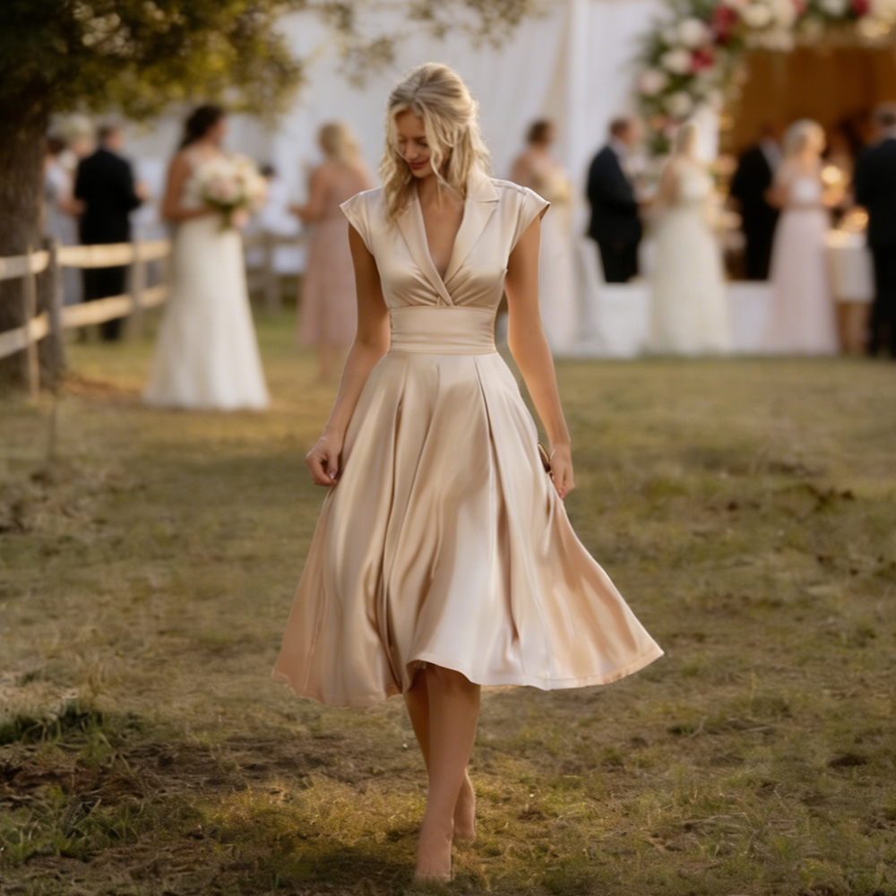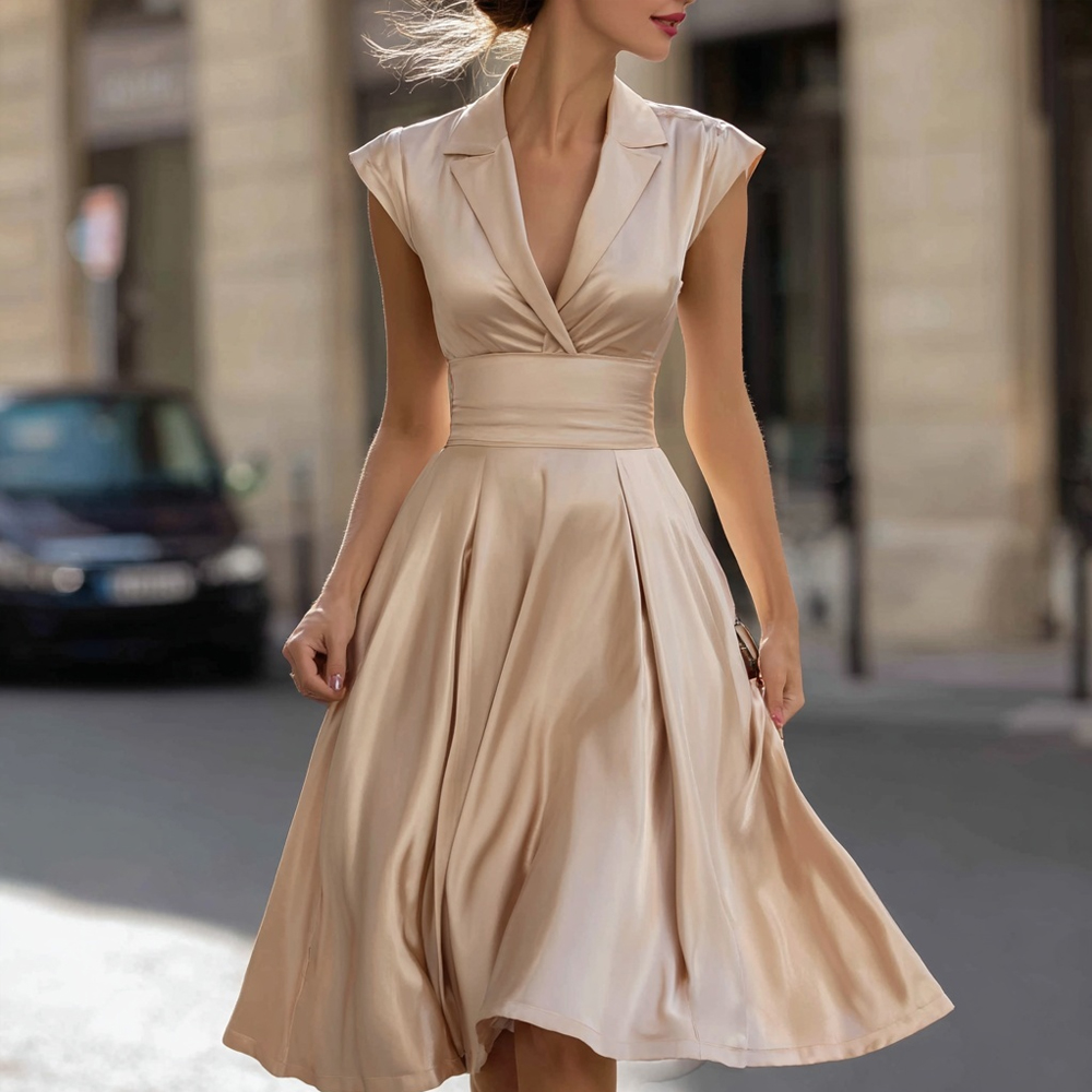 Classy Simple Lapel Satin Flowy Midi Dress