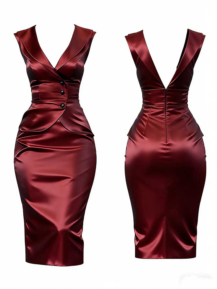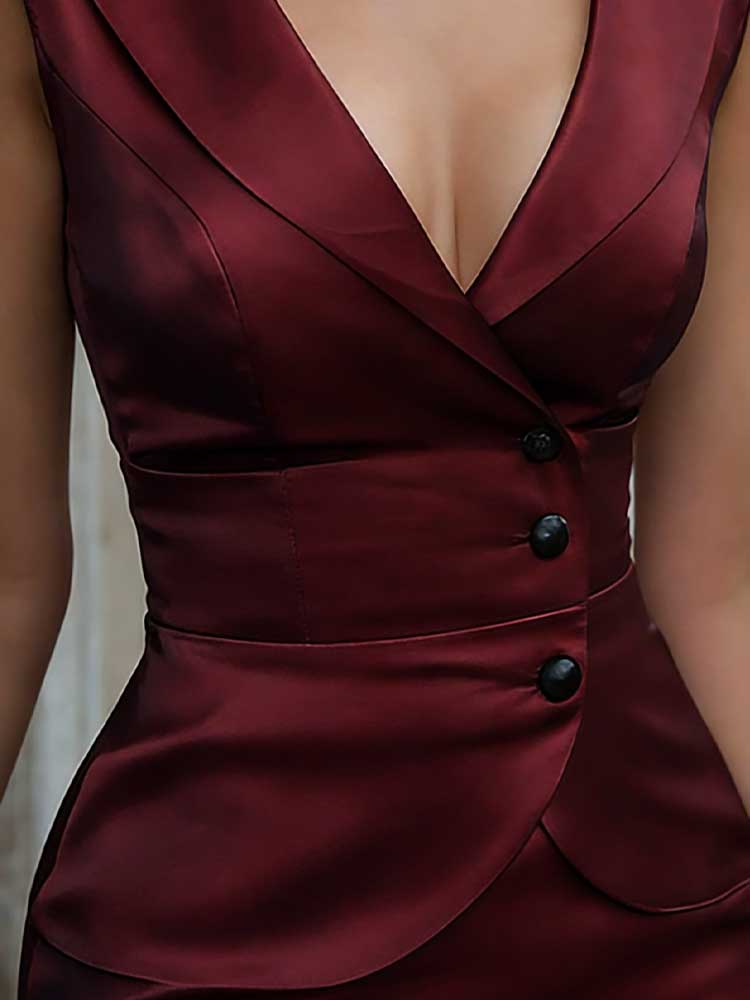 Classy Vest False Two-piece Satin Maxi Dress