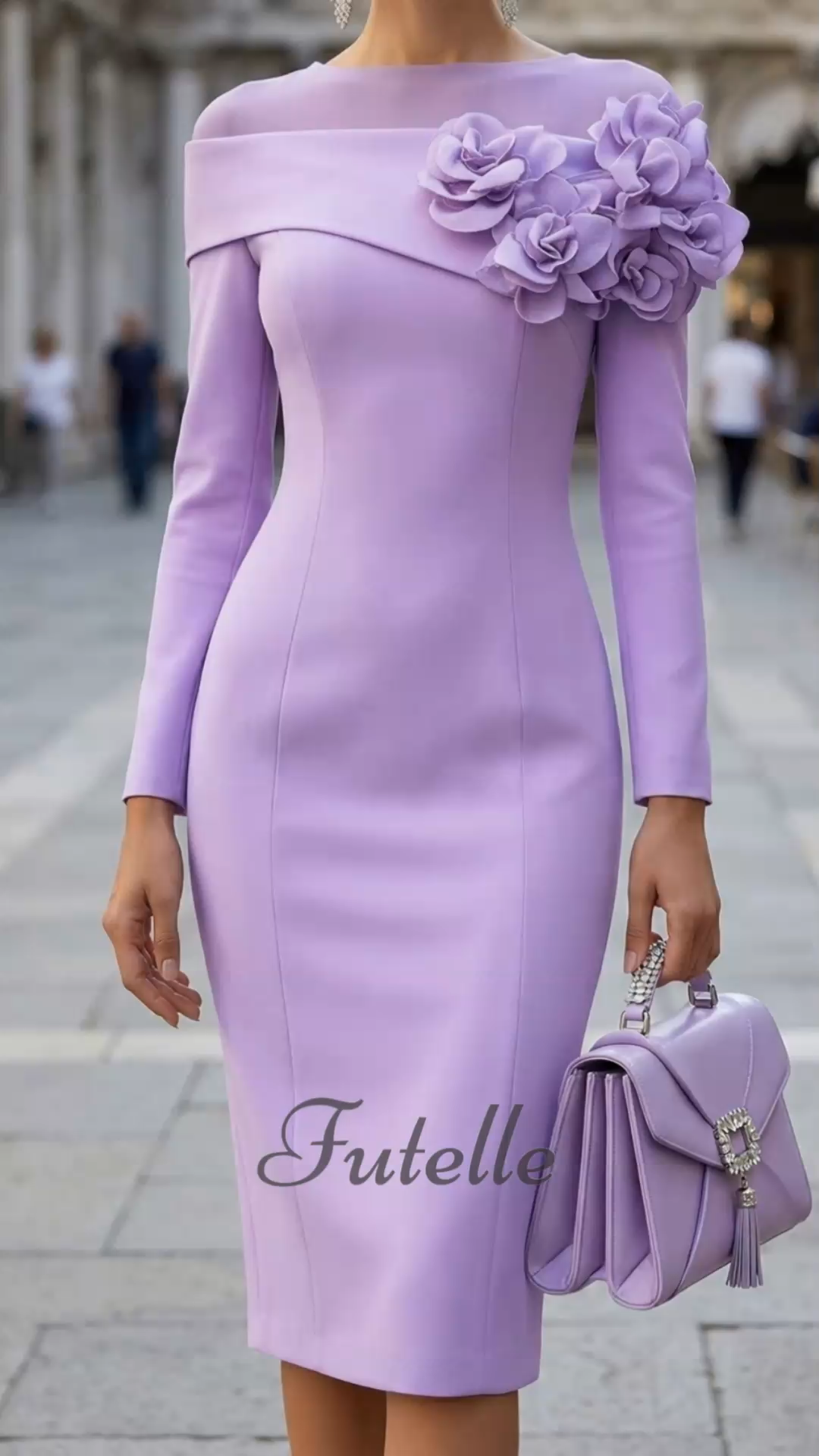 Elegant Round Neck Three Dimensional Flower Decorated Midi Dress