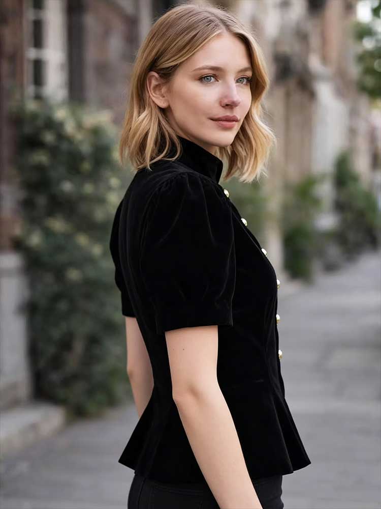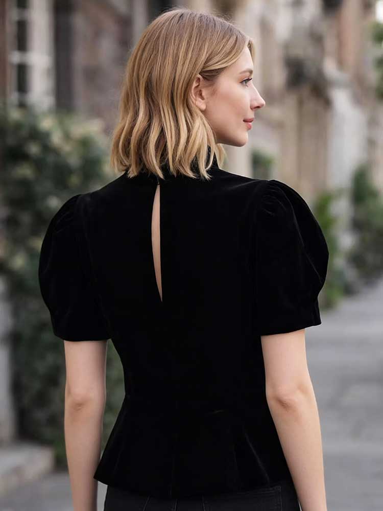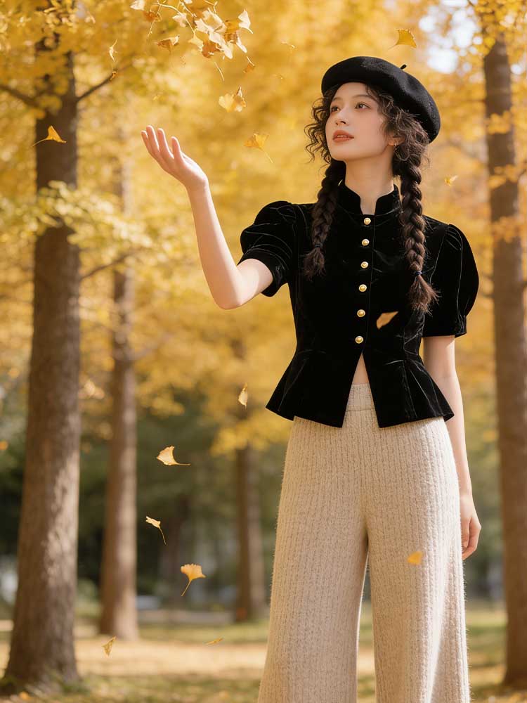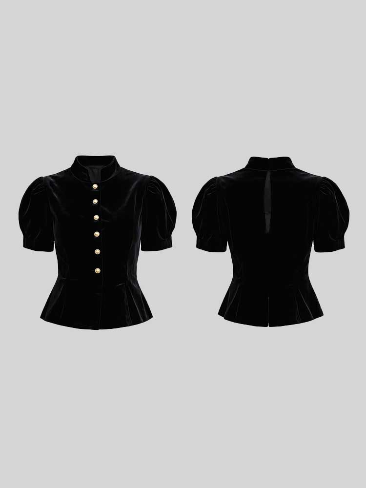 Elegant Temperament French Retro Velvet Round Neck Short Sleeve Coat